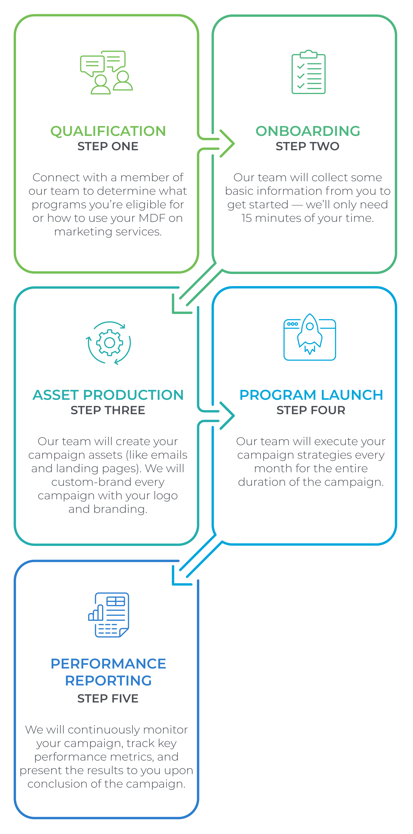 One Firefly makes it fast and easy for you to get started using your MDF or launching a manufacturer program. We require very little time investment on your part, and our team manages the creation, deployment, and evaluation process of every campaign from start to finish.