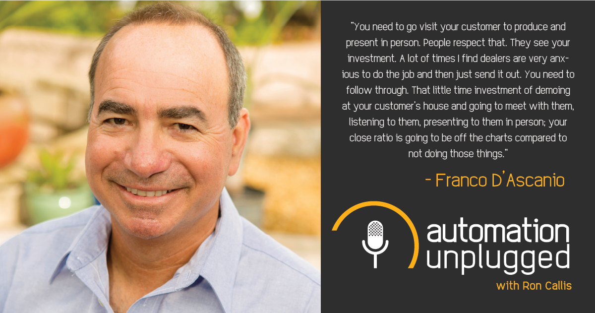 Ron: Hello. Ron Callis here with another episode of Automation Unplugged, Happy Wednesday. It is Cinco de Mayo. There's a rush in the construction business, specifically the residential side of the construction business that was busy. You guys, the integrators are all nicely busy. It definitely puts a smile on my face to know that you guys are doing so well. It does not mean it does not come without its own stresses and challenges because I know it does. I am bringing you today Show #168 of Automation Unplugged for those that missed the message last show, April. Last month was actually our fourth anniversary of my doing these interviews. Our guest is Franco D'Ascanio, Founder and President at Coastal Source. Franco, I know you're listening. You have to make sure we talk about line source. Because of my homework, I should have known what that was. Let's go ahead and bring Franco in, and he's over here patiently waiting. Franco, how are you, sir?