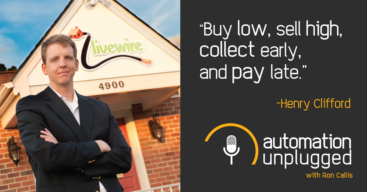 Henry: Well, Ron, we're kindred spirits because I would go to the Safeway and they sold Juicy Fruit in like the 10 pack and for a dollar. And I'd turn around and sell the Juicy Fruit pack for 50 cents or Blow Pops or things like that, sell them on the school bus. So I quickly figured out if you're an environment where high demand and low supply, you're going to make a profit. Yeah you're going to be a good shape. So you know, all of a sudden I found myself a wash and tens of tens of dollars in at an early age. So that was fun. I like selling, I still enjoy the thrill of closing a sale. So I think taking that passion for technology and, and the passion I had for not only selling, but entrepreneurial activity, I think it was a natural sort of stream of consciousness into where I eventually ended up. But as I went through high school, I went away to a sort of dead poet's society, kind of all boys boarding school. And really just kept my head down and worked hard and then had to put myself through school through the University of Maryland where I was studying journalism. So while I wasn't singing in the acapella group there and, and I was working and working really hard as a student, a work-study student, and I just was frustrated with the weighed scale of doing some of the lower skill work. And at that point the Internet was brand new. So I was tasked with working on the school web page and building and fixing computers and building and fixing servers. All these things happen sort of one after another, but they were only because I sought out the opportunity and sort of made those things happen. And so I became sort of higher and higher paid as I went. And I saw technology really as a way to leverage my passion but also pay for school and pay the rent. And it was fun because the whole time I'm doing something that I love and getting paid for it. So I started my first consulting business. About a year into school, building webpages, building work, helping people specify and install computers, things like that. And then doing network administration. And then that kind of was great through the mid to late nineties. Meanwhile I'm getting a journalism degree, so principally writing and so I don't really have any formal training in the technology side, in fact I'd probably fail a computer science class if you put me put me in one. But I've always just understood how technology works. It's come easy to me, but in an academic sense, the theoretical side never really did. So the practical sides always been very appealing. So get out of school, got my journalism degree and continued my consulting career and then fast forward to 2001, the latest.com I worked for, went under. And I bought a house for the first time and looked around for somebody to come and wire up the house cause I really wanted all the technology in the new house. And all I found was a scary looking guy, missing a lot of teeth who candidly kind of freaked out my wife or another guy who was too cool for school and didn't want to talk to me unless I had $100,000 to spend. So I saw a gap in the middle of the market and nobody had taken a professional services approach to home technology. So that became Livewire. So we started off there was no we, it's just me and my dad's Neon tooling around the place with a rented generator from the Home Depot in the back of the car, ran into a builder at the workout group I was doing. And the builder starts complaining about how the electricians left him high and dry on a couple of his projects and that the electrician didn't understand how to do the low voltage cabling. And I said, well we do that. And so I met him at a job site, showed him a photo gallery of the work that I'd done on my own house and my brother and I saddled up in the Dodge Neon and went and spent like three or four days wiring a house that I'd expect one of our crews to do now in about four hours. And so that was our humble beginnings. And that grew from there into my quest to get the local builders to switch from using the electrician to using Livewire. And before you knew it, we went from doing one or two homes to doing 400 then 800 homes in the matter of a couple of years. So we grew very rapidly and then started hiring employees. I hired a sales guy with my first employee. The rest of the folks were subcontractors. And then in 2006, we acquired a building and built it out as a design center, which was, I feel like a really critical move for us. I feel like before when we were the proverbial trunk slammer, which it's fine.