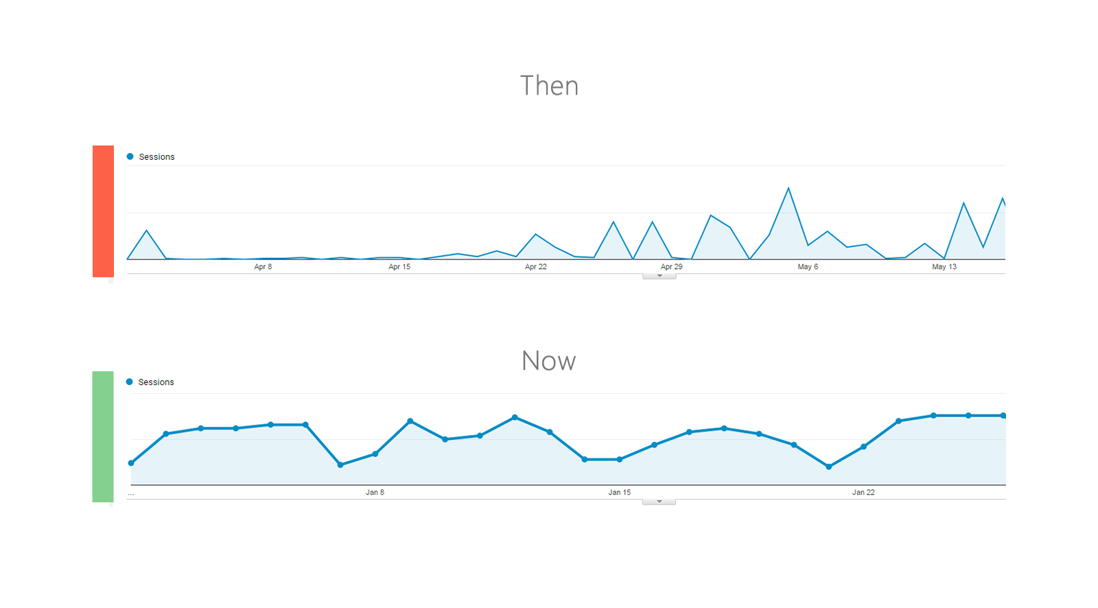 The goal was to increase the likelihood of people finding each website on Google initially, and it did actually increase visits to the site. However, since each website had an outdated, unimpressive design and very little relevant content, the visitors would immediately leave. This in turn harmed each website’s domain authority, a search engine ranking signal based on the age, size, and popularity of websites.