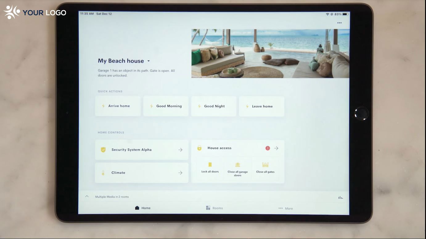 Each video within the Crestron Home library features your logo prominently featured in the opening and closing sequences, while a watermark of that same logo is displayed throughout the duration of the video, creating a consistent branding opportunity.