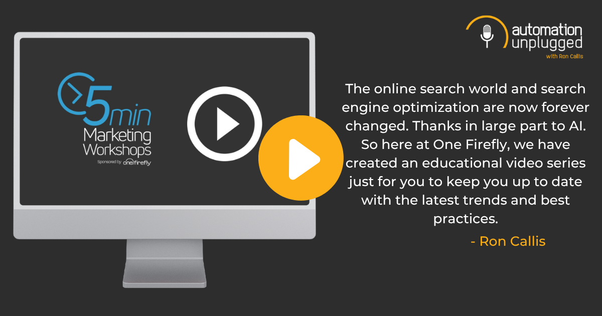 Automation Unplugged #309 condenses One Firefly’s “5-Minute Marketing” series into a powerful SEO deep dive. In this educational session, we cover the rise of zero-click search results, optimizing for local search, building your Google Business Profile.
