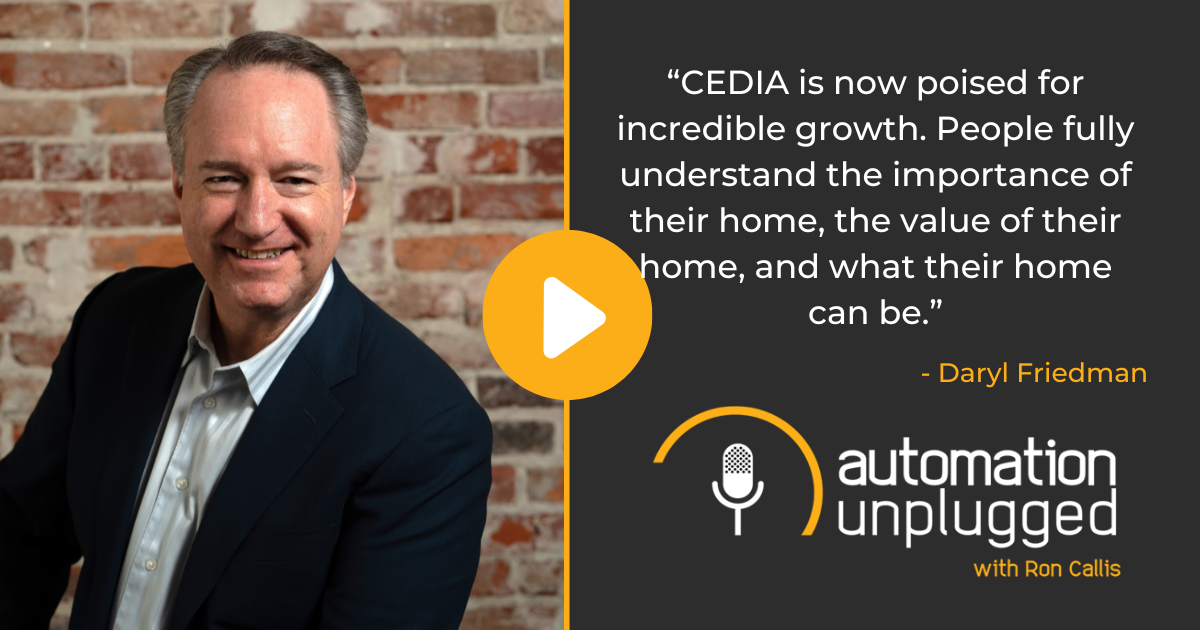 Automation Unplugged #271 feat. Daryl Friedman, Global President & CEO of CEDIA. Join us for an exciting show that dives into how CEDIA is raising awareness of the industry to the consumer, upcoming education and activities at CEDIA Expo this year.