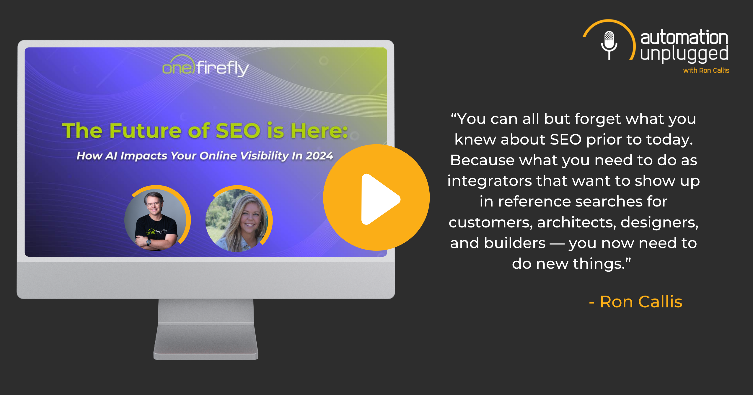 Automation Unplugged #276 is an interview with a One Firefly marketing expert: Jordan Littman, SEO Lead. Join us for an exciting show that dives into the SEO landscape in 2024, and what integrators need to know to grow their visibility and lead generation