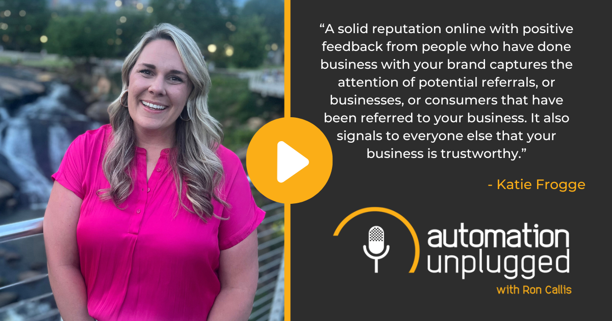 Automation Unplugged #280 feat. One Firefly marketing expert: Katie Frogge, Senior Account Manager & Product Specialist. Join us for an exciting show that dives into the impact of online reviews for business reputation, customer trust, SEO and more!