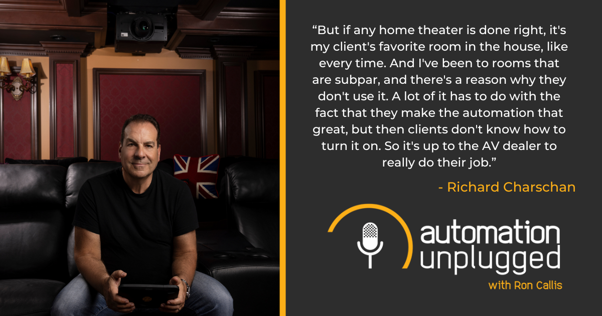 Automation Unplugged #272 features Richard Charschan, President & CEO of AcousticSmart Home Theatre Interiors. Join us for an exciting show that dives into Richard’s new book Home Theaterology, advice for designing an immersive home theater, and more.
