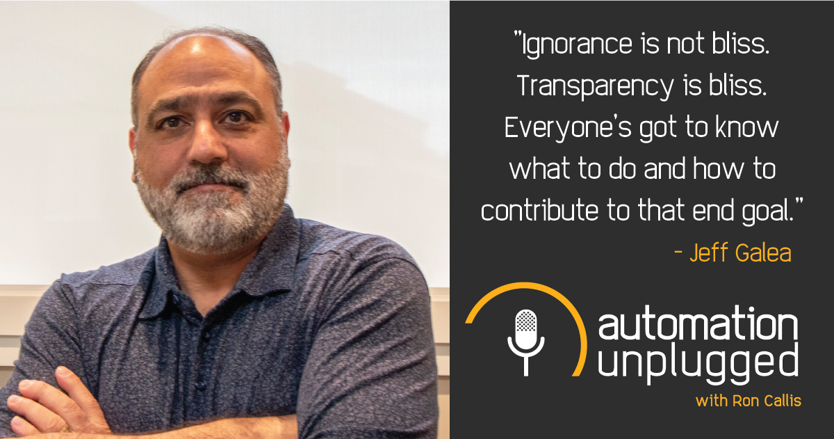 Ron: Hello, Ron Callis here with another episode of Automation Unplugged, brought to you by my day job over at One Firefly. Let's go ahead and bring in for show #157 Jeff Galea, Founder and President at Boca Tech and Automation. Jeff, how are you, sir?