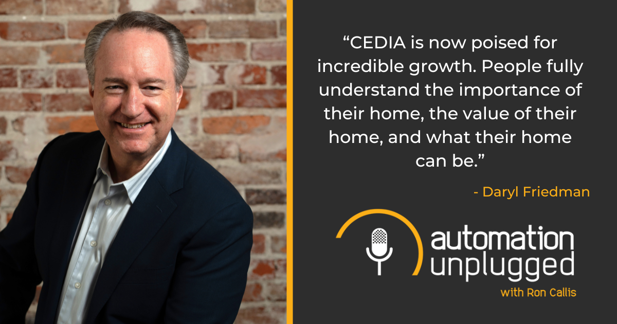 Automation Unplugged #271 feat. Daryl Friedman, Global President & CEO of CEDIA. Join us for an exciting show that dives into how CEDIA is raising awareness of the industry to the consumer, upcoming education and activities at CEDIA Expo this year.