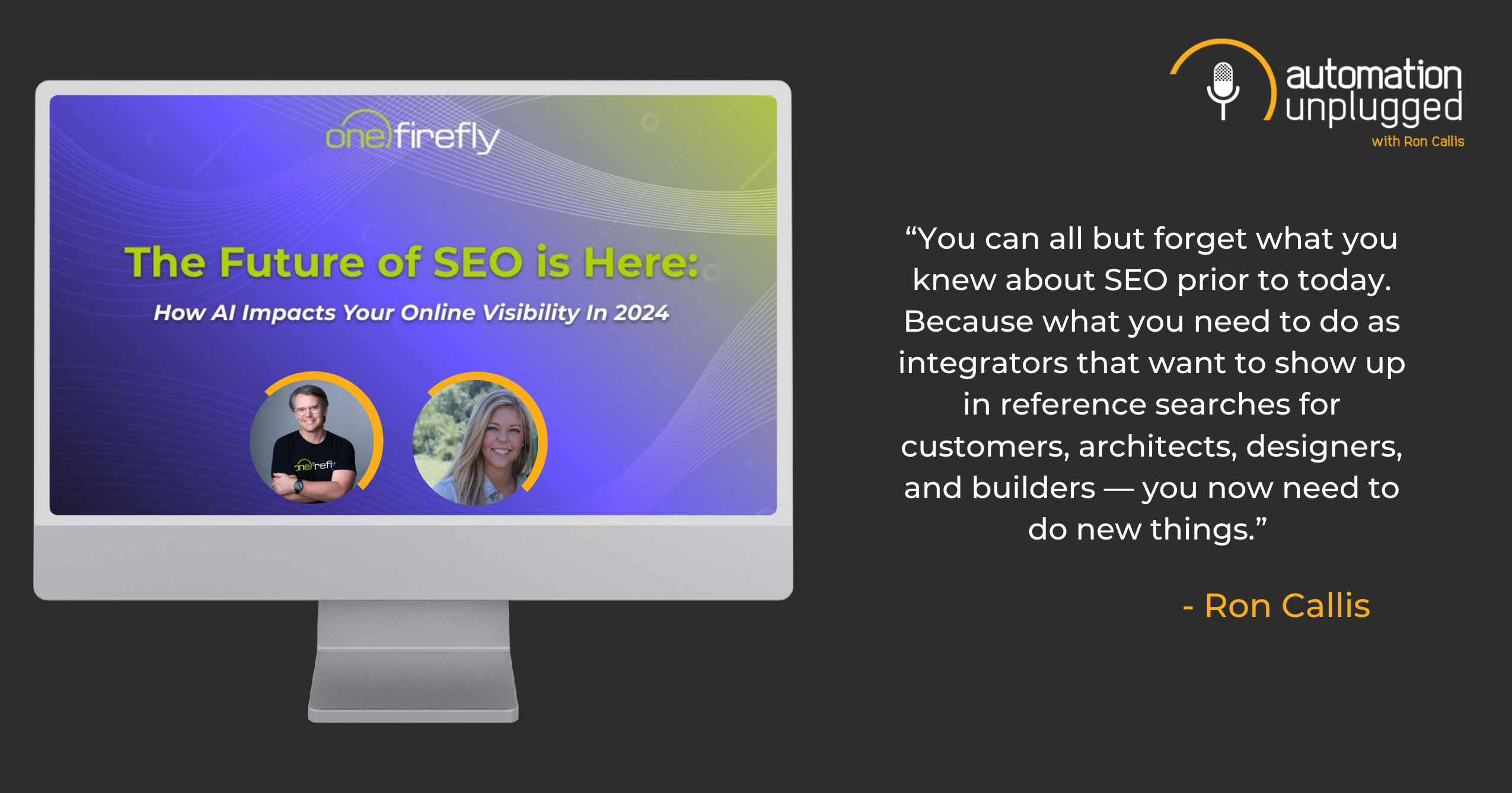 Automation Unplugged #276 is an interview with a One Firefly marketing expert: Jordan Littman, SEO Lead. Join us for an exciting show that dives into the SEO landscape in 2024, and what integrators need to know to grow their visibility and lead generation
