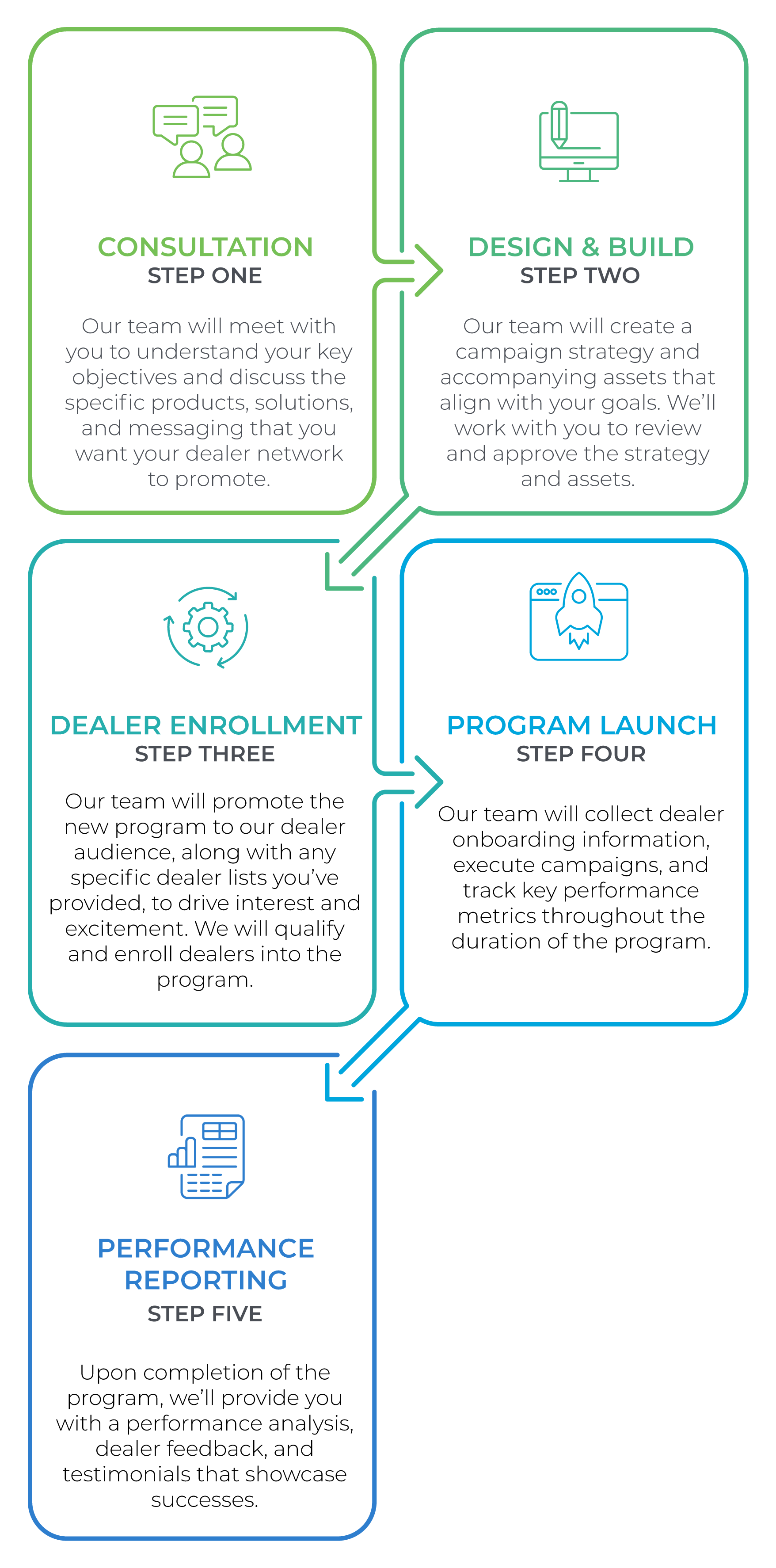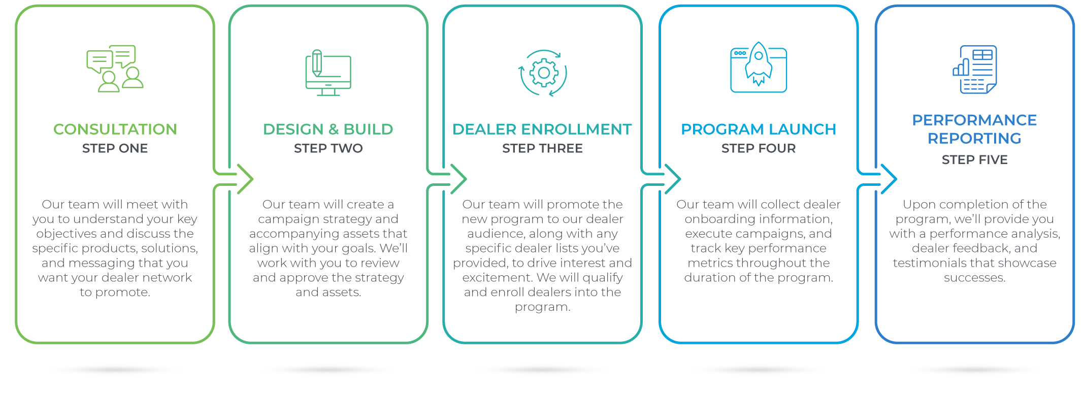- We have the industry expertise and market insight to create successful programs. Our team has the industry knowledge, marketing experience, in-house resources, and relationships with dealers to build and deploy brand-focused programs that will help both you and your dealers drive new business growth.